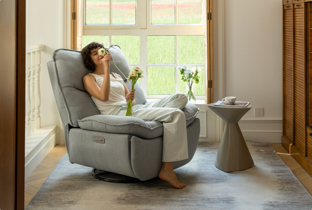 Ein Wandliegesessel ist einer der besten Lesesessel für Schlafzimmer mit begrenztem Platz. Im Gegensatz zu konventionellen Sesseln, die viel Platz für den Liegemechanismus benötigen, gleitet ein Wandliegesessel sanft in eine zurückgelehnte Position, nur wenige Zentimeter von der Wand entfernt, und bietet ausreichend Unterstützung für Rücken und Beine. Sein kompaktes Design geht nicht auf Kosten des Komforts und ist daher ideal, um es sich mit seinem Lieblingsbuch in kleineren Wohnräumen gemütlich zu machen.