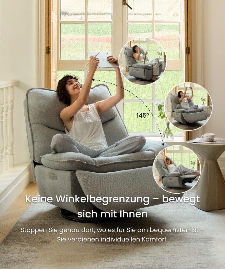 Benutzerfreundlichkeit: Der größte Vorteil von elektrischen Relaxsesseln ist ihre einfache Bedienung. Mit nur einem Knopfdruck können Sie die Position präzise und mühelos einstellen, was sie ideal für ältere Menschen oder Menschen mit körperlichen Einschränkungen macht.